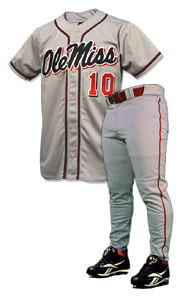Leading off is the traditional complete baseball uniform. It's made from the best quality American made Visa polyester. You can't find a better professional quality baseball uniform. The complete set includes jersey 101-1, pant 201-1, tackle-twill (sewn) team name and back player number. Like any great lead-off hitter this uniform delivers speed (guaranteed to deliver in as little as two weeks) and power.